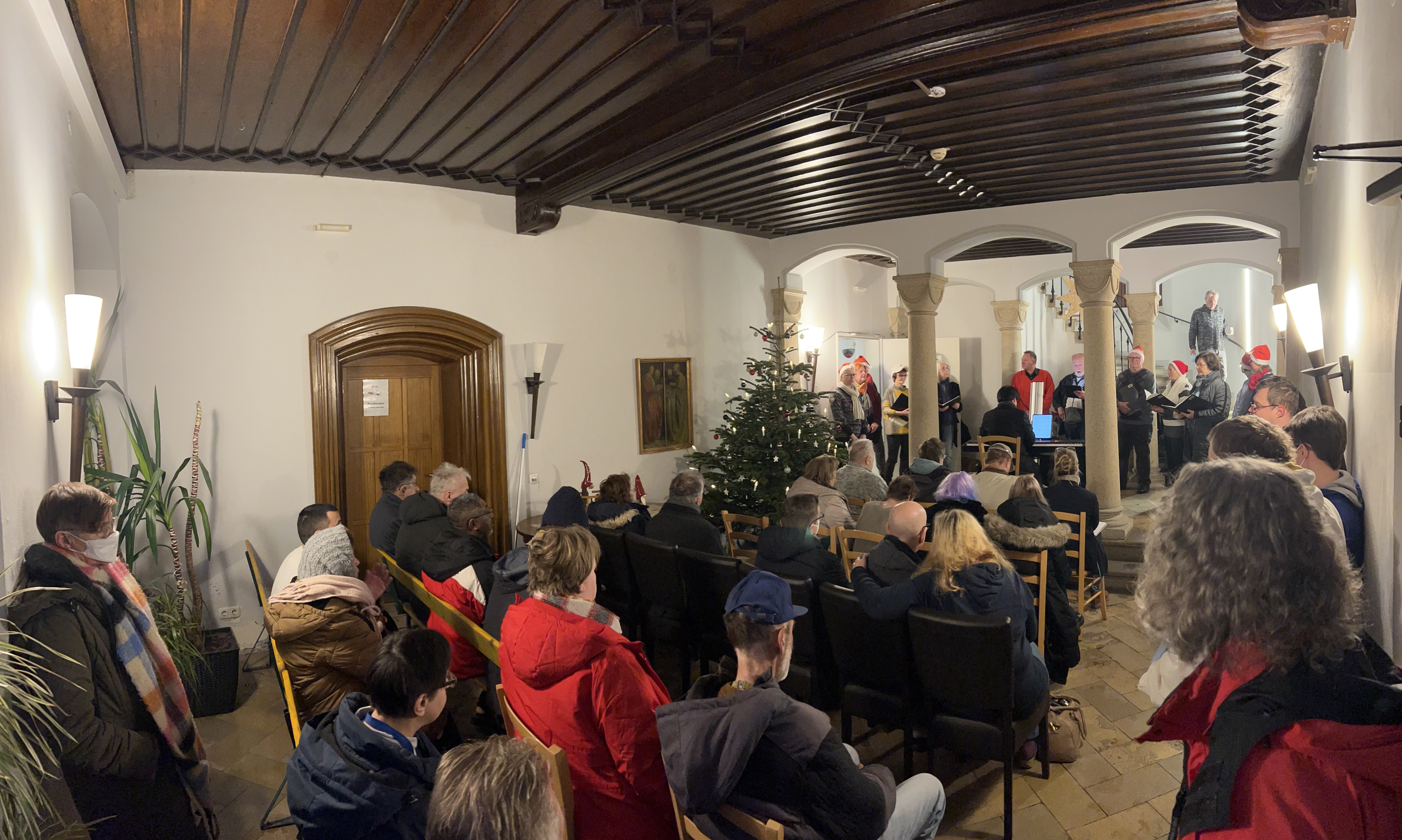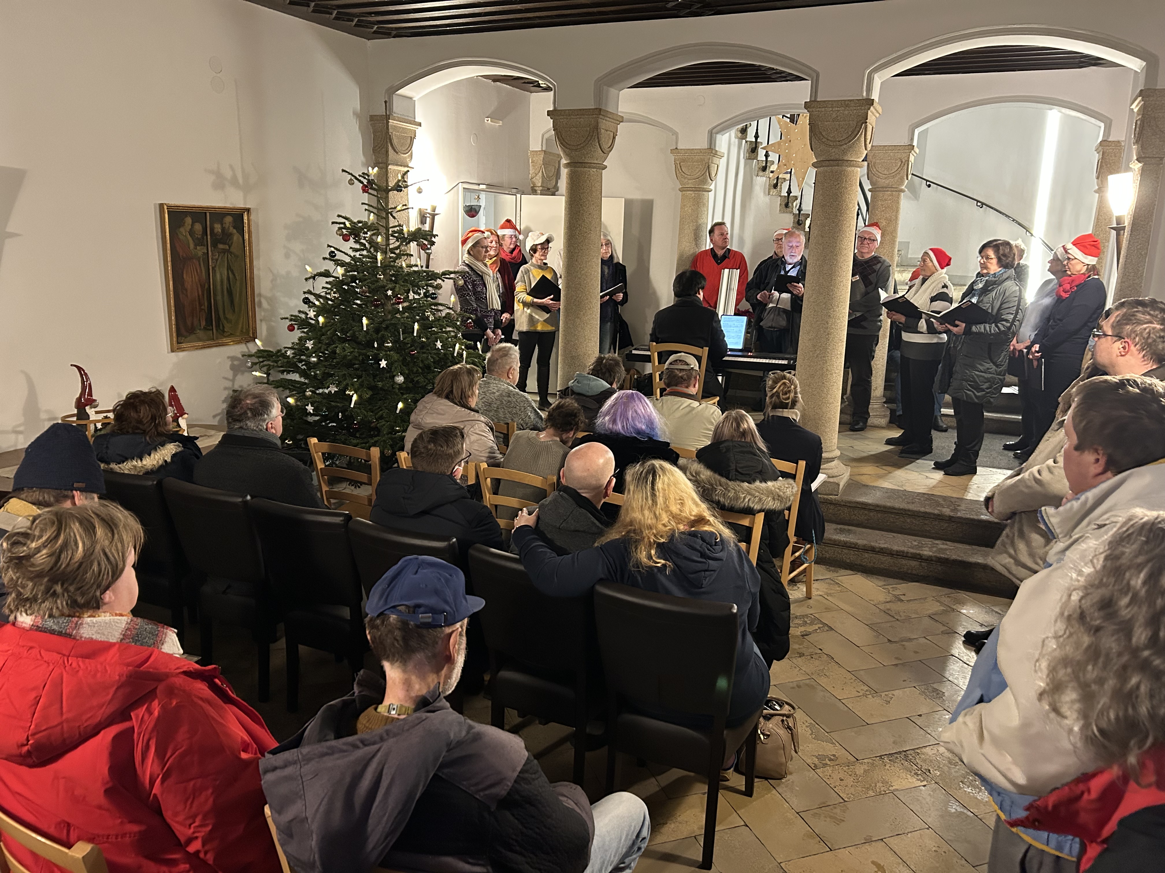 Im Rahmen des Lebendigen Adventskalenders haben wir uns bereit erklärt mitzumachen. Als Türchen Nr. 18 durften wir nach unserem Konzert für die Bewohner der Diakonie auch die Schlossräume für diese Aktion nutzen. Das Türchen wurden von den Bewohnern unter Anleitung des Deko-Teams wunderschön gestaltet. Beim Öffnen des Türchens wurde vom Gute-Laune-Chor das Lied „Engel gucken schon ums Eck“ gesungen. Mit guten Wünschen für Weihnachten und Neujahr verabschiedeten wir die Gäste wieder.